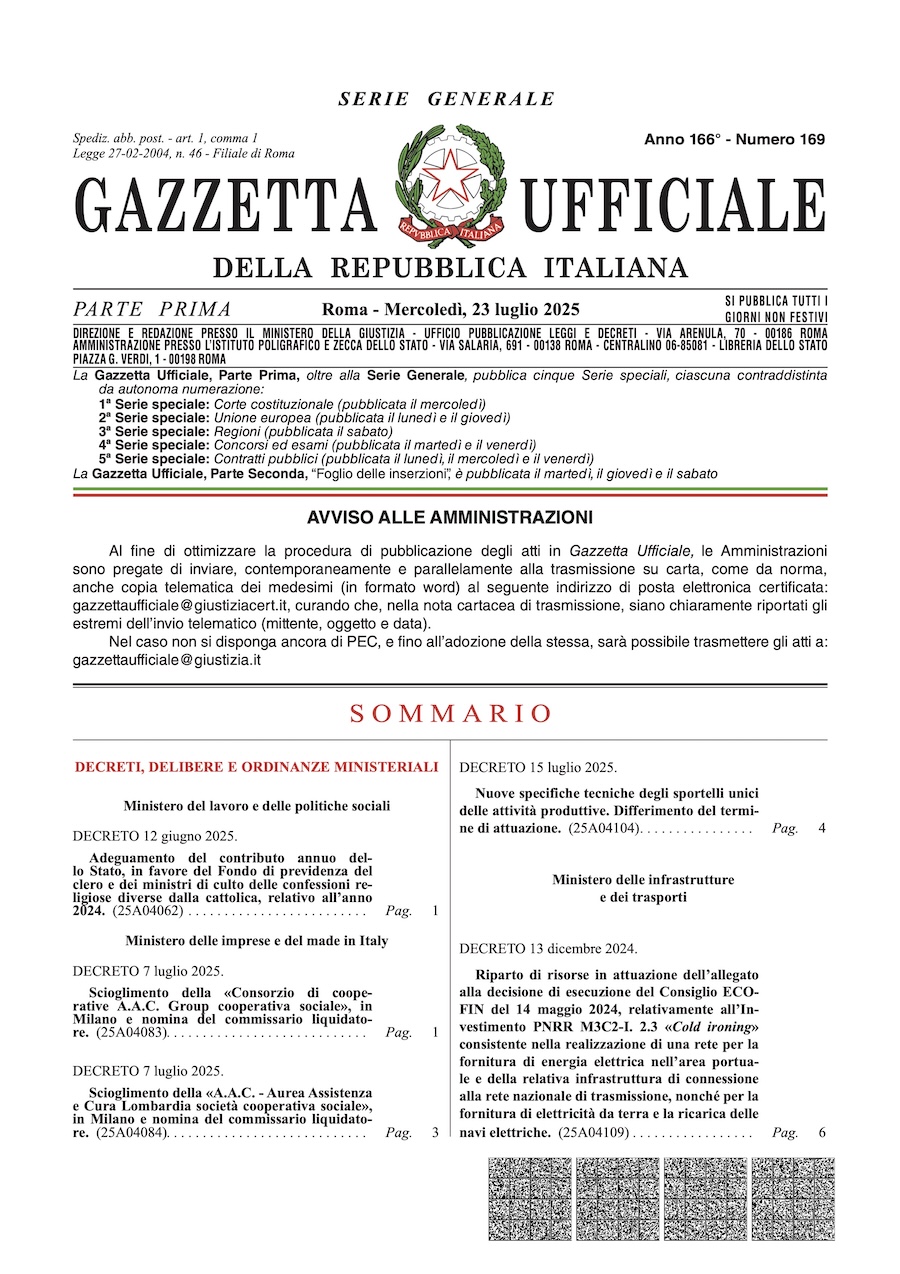 (In Gazzetta Ufficiale del 23 luglio 2025 da pagina 24)